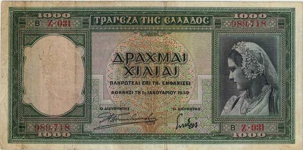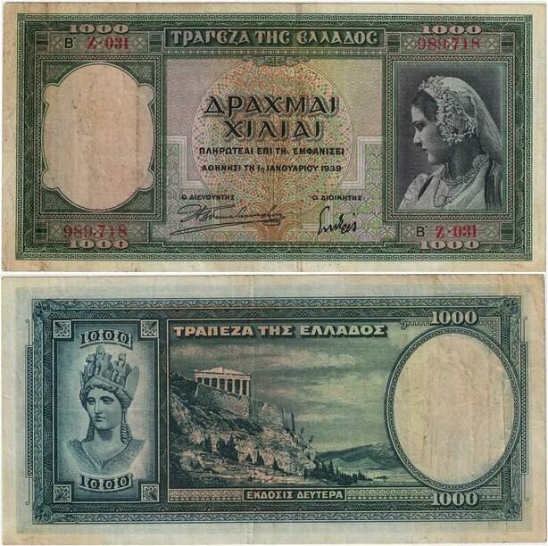 Q1892 Banknote Greece 1000 Drachmai Athena 1939 -> Make offer