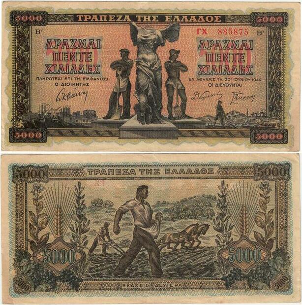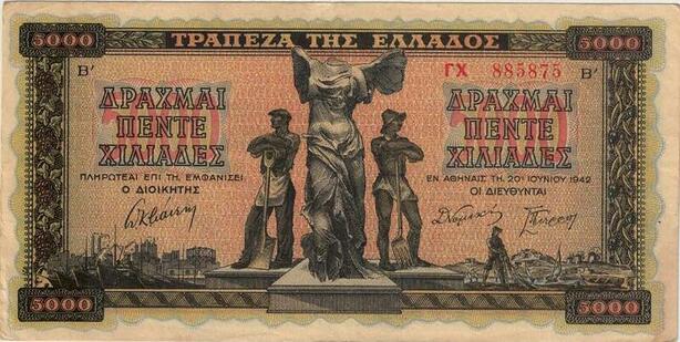 Q1897 Banknote Greece 5000 Drachmai 1942 -> Make offer