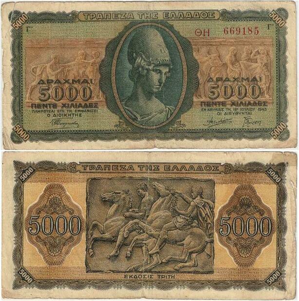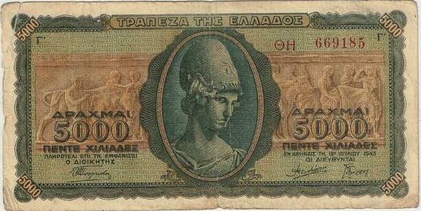 Q1898 Banknote Greece 5000 Drachmai Athena 1943 -> Make offer