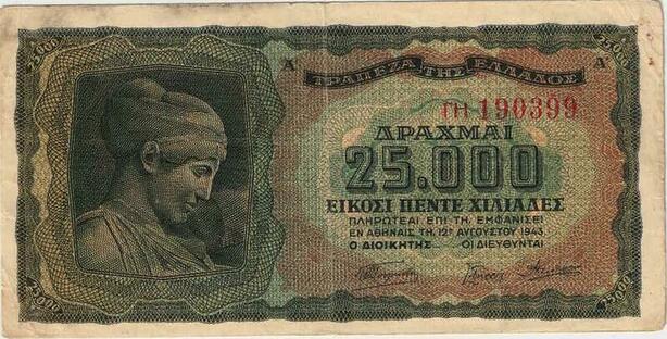 Q1899 Banknote Greece 25000 Drachmai Nymph Deidamia 1943 -> Make offer