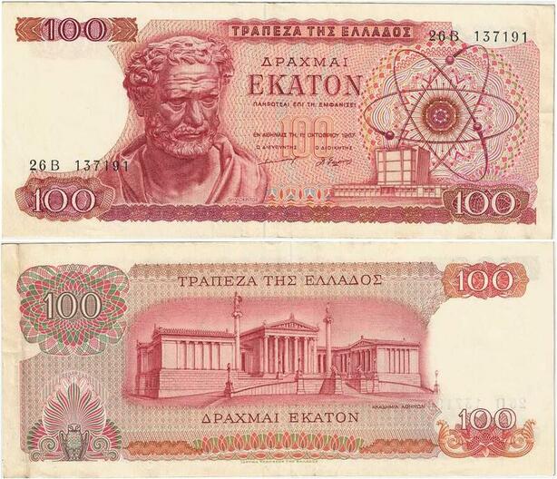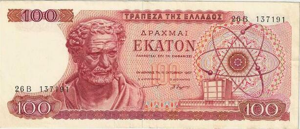 Q1904 Banknote Greece 100 Drachmai Demokritos 1967 AU -> Make offer