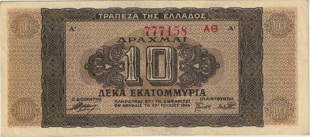 Q1912 Banknote Greece 10 Millions Drachmai 1944 -> Make offer