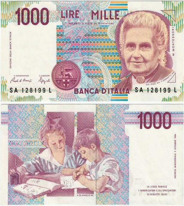 Q1921 Banknote Italy 1000 Lire Maria Montessori 1990 UNC -> Make offer