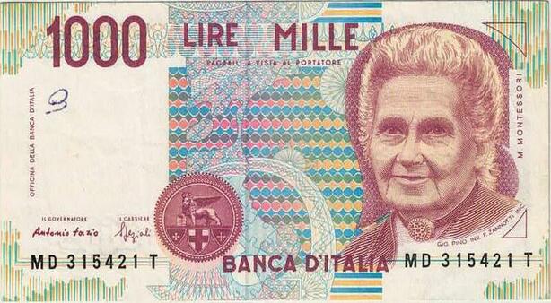 Q1928 Banknote Italy 1000 Lire Maria Montessori 1990 AU -> Make offer