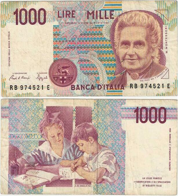 Q1936 Banknote Italy 1000 Lire Maria Montessori 1990 -> Make offer