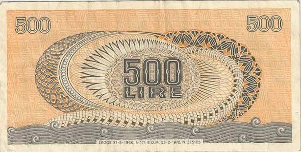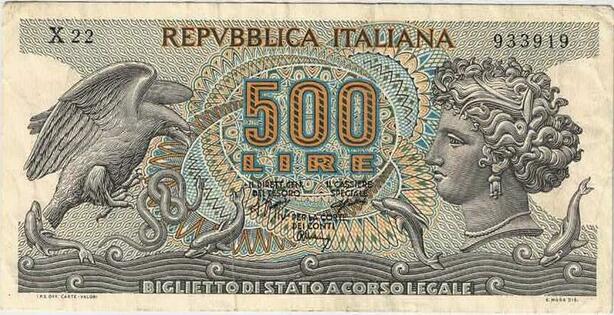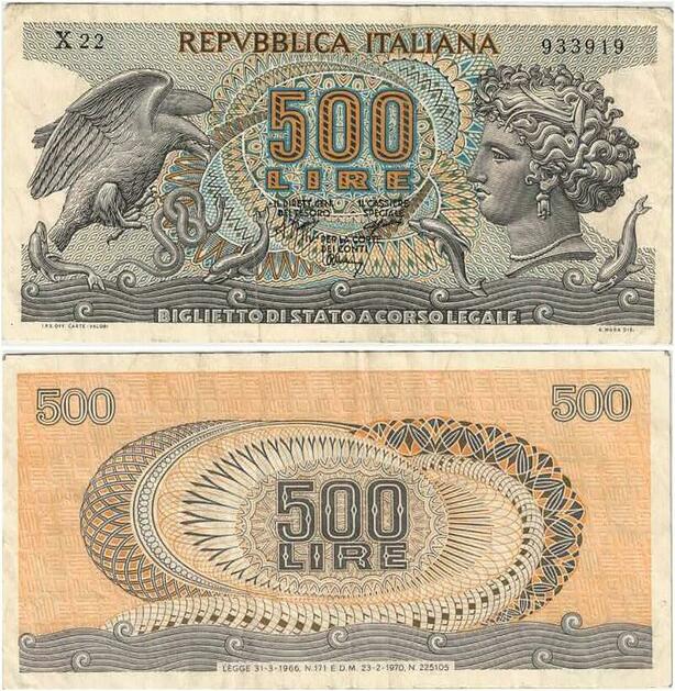 Q1938 Banknote Italy 500 Lire Arethusa 1966 1970 -> Make offer
