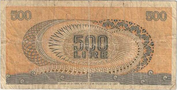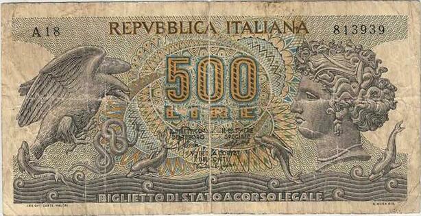 Q1940 Banknote Italy 500 Lire Arethusa 1966 1970 -> Make offer