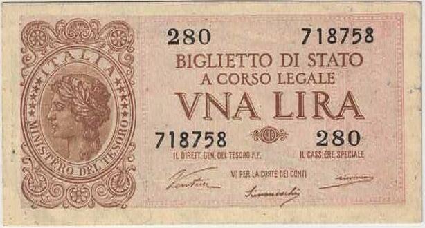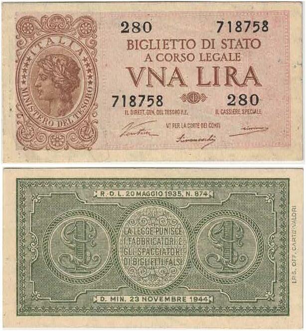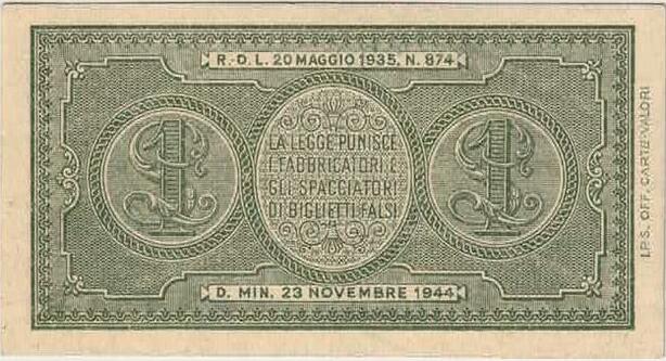 Q1952 Banknote Italy 1 Lire 1944 -> Make offer