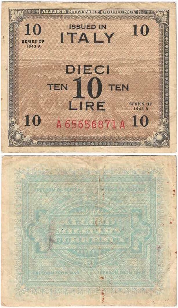 Q1963 Banknote Italy 10 Lire Allied Military Currency 1943 -> Make offer