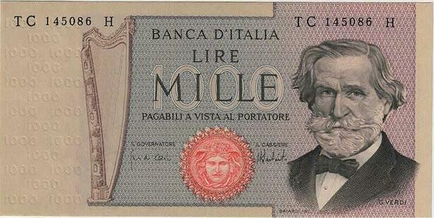Q1969 Banknote Italy 1000 Lire Giuseppe Verdi 1975 UNC -> Make offer