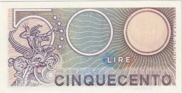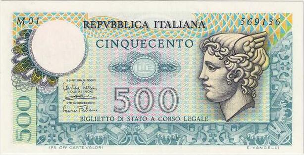 Q1972 Banknote Italy 500 Lire Mercury 1974 UNC -> Make offer