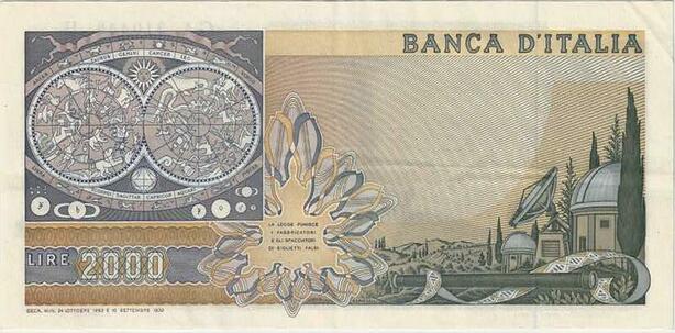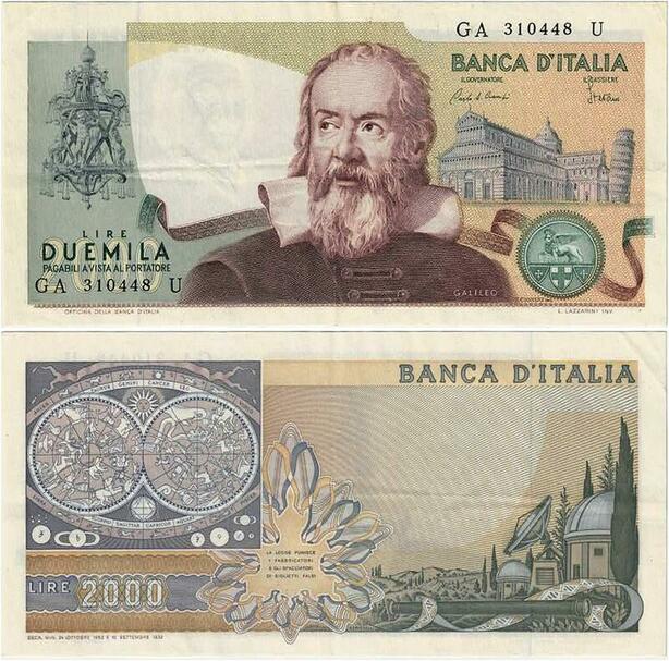 Q1975 Banknote Italy 2000 Lire Galileo 1983 AU+ -> Make offer