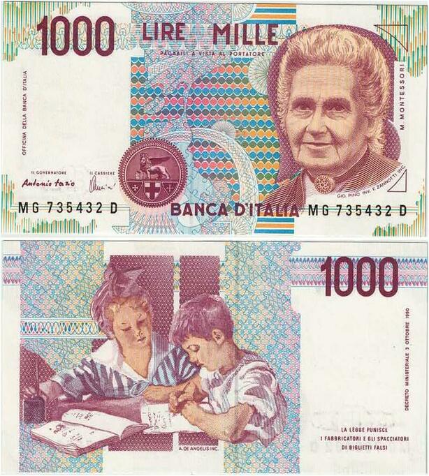 Q1980 Banknote Italy 1000 Lire Maria Montessori 1990 UNC -> Make offer