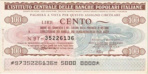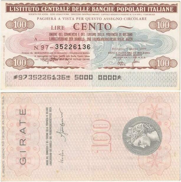 Q1987 Italy 100 Lire Istituto Centrale Blanche Popolari 1977 UNC -> M offer