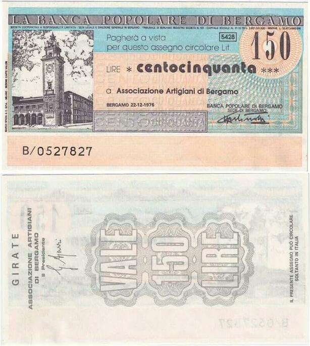 Q1988 Italy 150 Lire Banca Popolare di Bergamo 1976 UNC -> Make offer