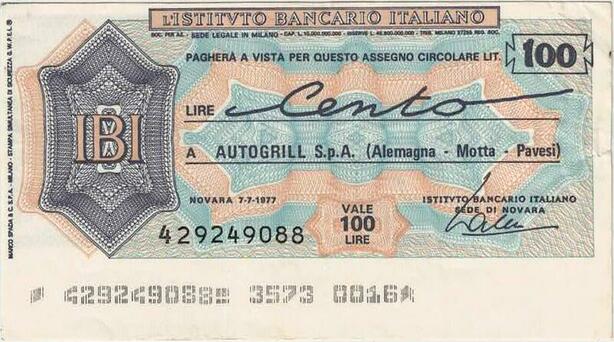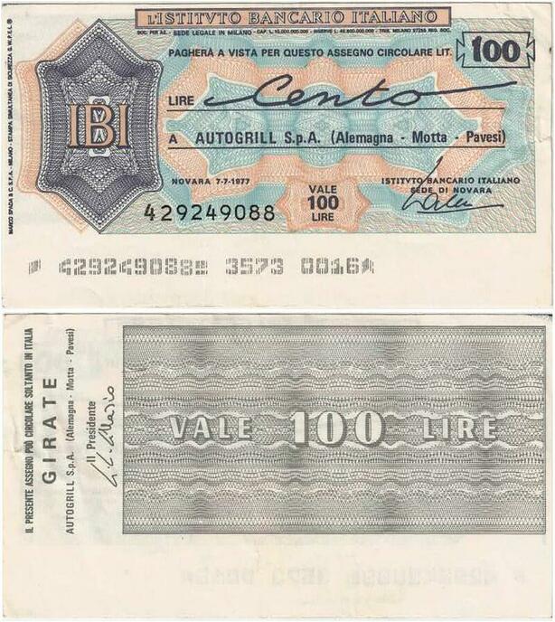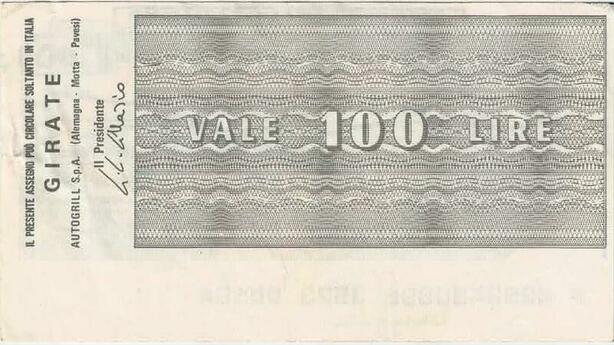 Q1993 Italy 100 Lire Istituto Bancario Italiano Autogril S.P.A 1977 ->Offer
