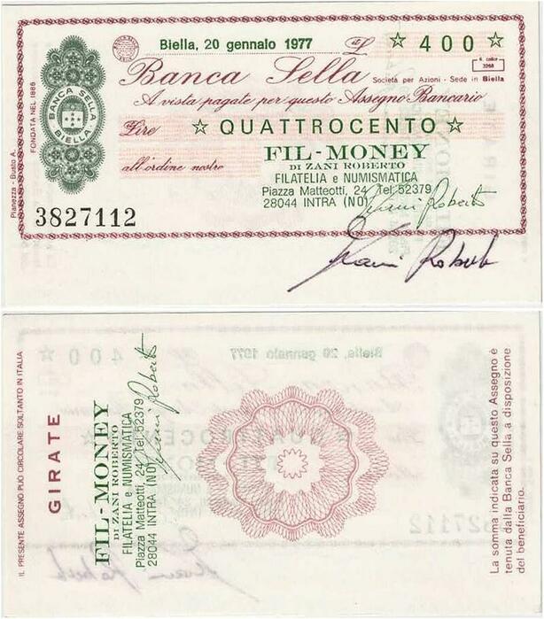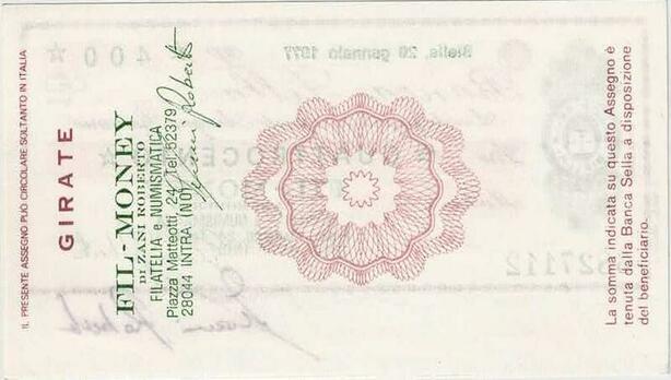 Q1996 Italy 400 Lire Babca Sella Fil Moneyt Di Zani Roberto 1977 UNC >Offer
