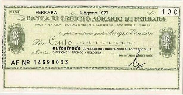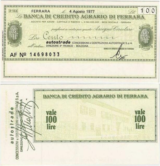Q1997 Italy 100 Lire Banca di Credito Agrario di Ferrara 1977 UNC > Offer