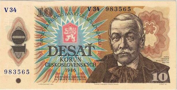 Q2005 Banknote Czechoslovakia 10 Korun Pavol Országh Hviezdoslav 1986 AU