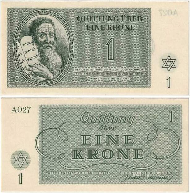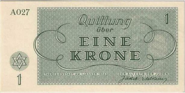 Q2006 Rare Czechoslovakia Ghetto Theresienstadt Judaica Krone 1943 UNC