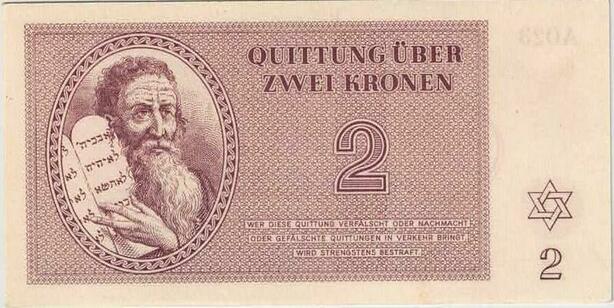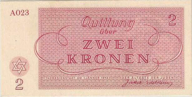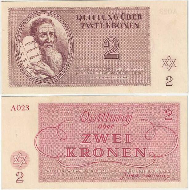 Q2007 Rare Czechoslovakia Ghetto Theresienstadt Judaica 2 Kronen 1943 UNC