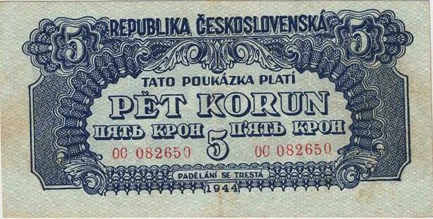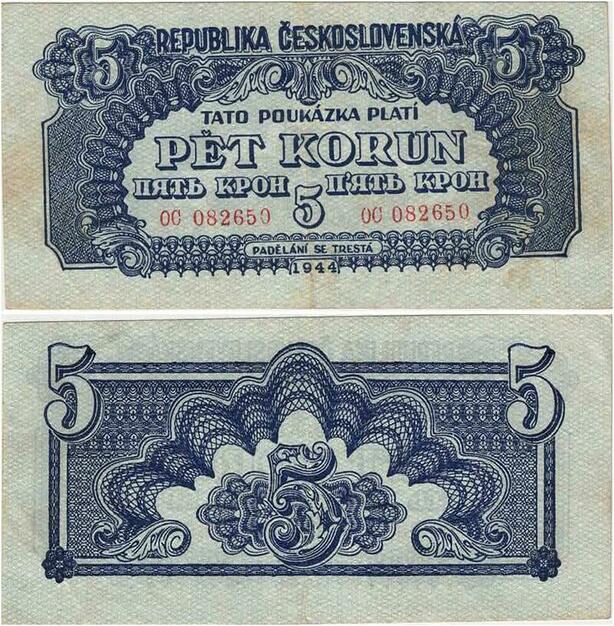 Q2030 Banknote Czechoslovakia 5 Korun WWII 1944 - Offer