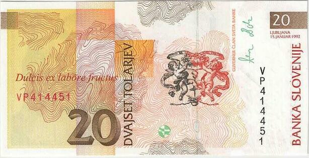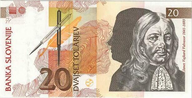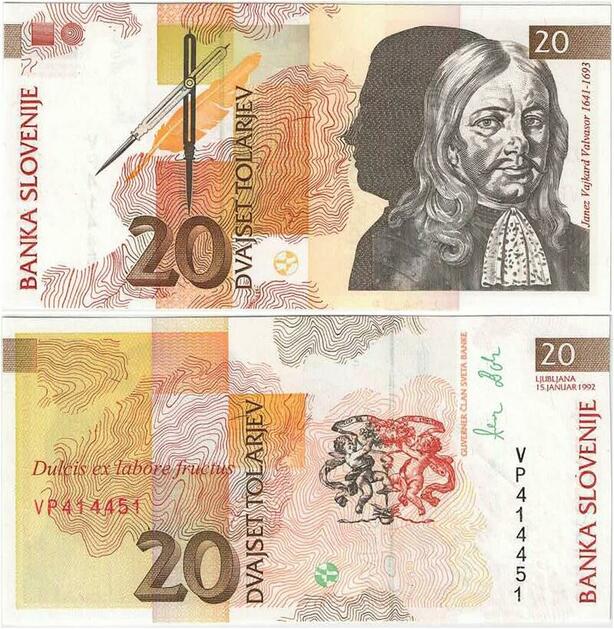 Q2069 Banknote Slovenia 20 Tolarjev Johann Weikhard von Valvasor 1992 UNC