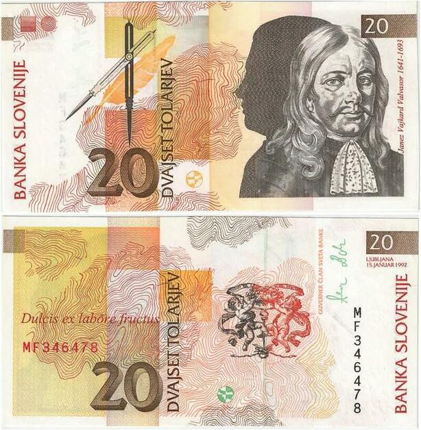 Q2074 Banknote Slovenia 20 Tolarjev Janez Valvasor 1992 UNC - Offer