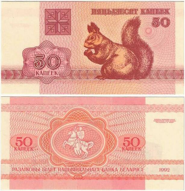 Q2132 Banknote Belarus 50 Rublei Red Squirrel 1992 UNC - Offer