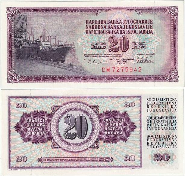 Q2163 Banknote Yugoslavia 20 Dinara Cargo 1978 UNC - Offer