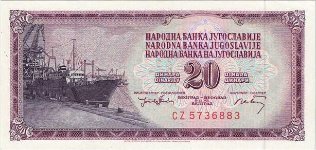 Q2165 Banknote Yugoslavia 20 Dinara Cargo 1974 UNC - Offer