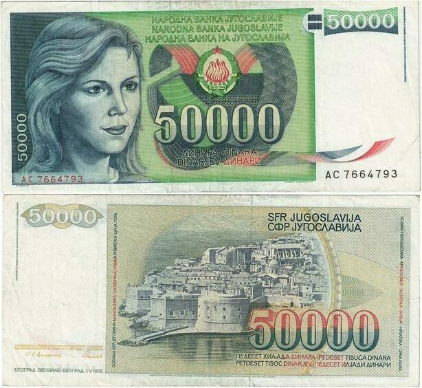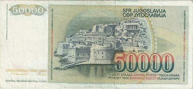 Q2166 Banknote Yugoslavia 50000 Dinara Dubrovnik view 1988 - Offer