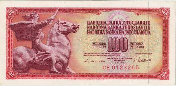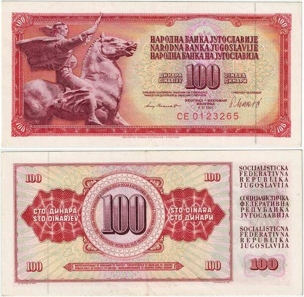 Q2177 Banknote Yugoslavia 100 Dinara Statue Horse 1981 - Offer