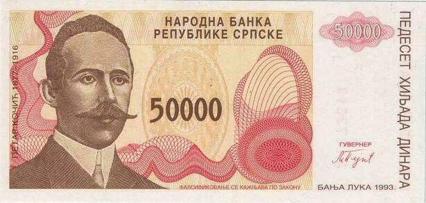 Q2214 Bosnia Herzegovina Srpska 50000 Dinara Petar Kočić 1993 UNC - Offer