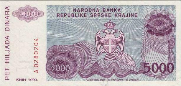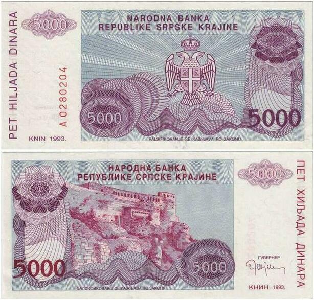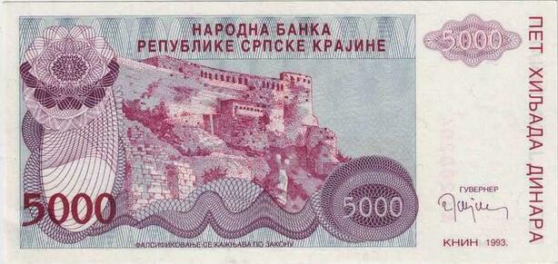 Q2223 Banknote Croatia Krajina 5000 Dinara Fortress Knin 1993 UNC - Offer