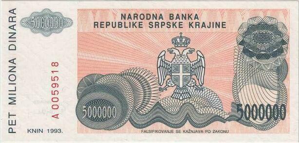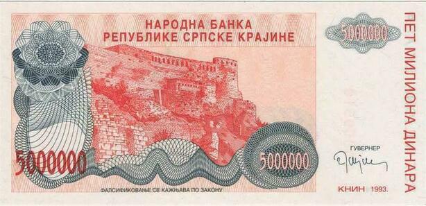 Q2230 Croatia 5 Millions Dinara Bank Serbia Fortress Knin 1993 UNC - Offer