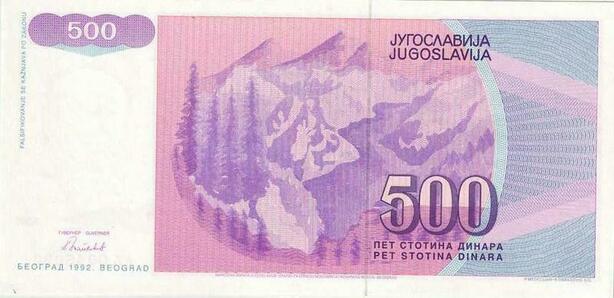 Q2262 Banknote Yugoslavia 500 Dinara Mountain 1992 UNC - Offer