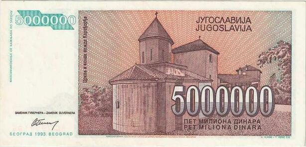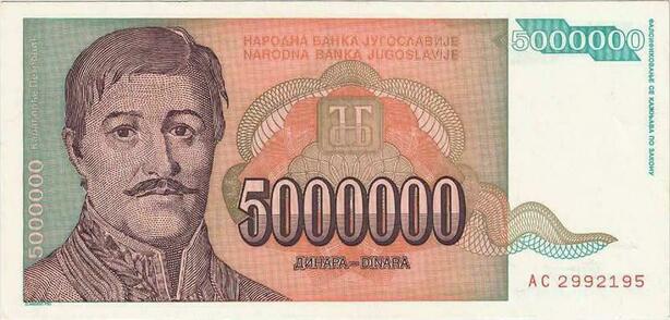 Q2267 Banknote Yugoslavia 5 Millions Dinara Karađorđe 1993 UNC - Offer