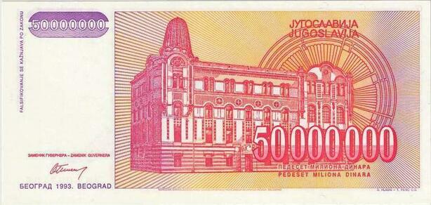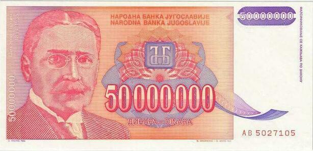 Q2287 Yugoslavia 50 Millions Dinara Stevan Stojanović Mokranjac 1993 UNC