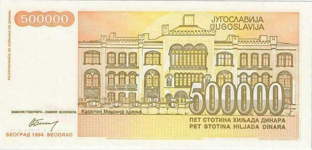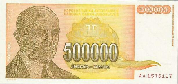 Q2293 Banknote Yugoslavia 500000 Dinara Jovan Cvijić 1994 UNC - Offer
