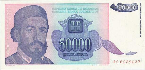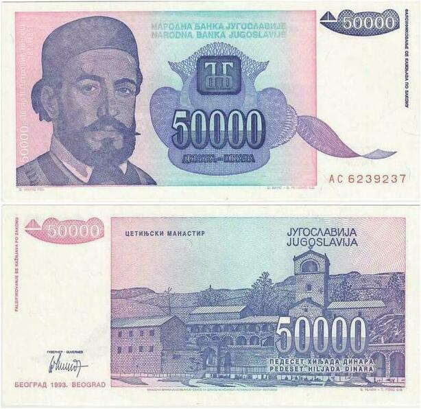 Q2295 Yugoslavia 50000 Dinara Petar II Petrovic Njegos 1993 UNC - Offer