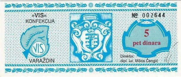 Q2297 Croatia 5 Pet Dinara Vis Kondekcija Varazdin Local Note UNC - Offer