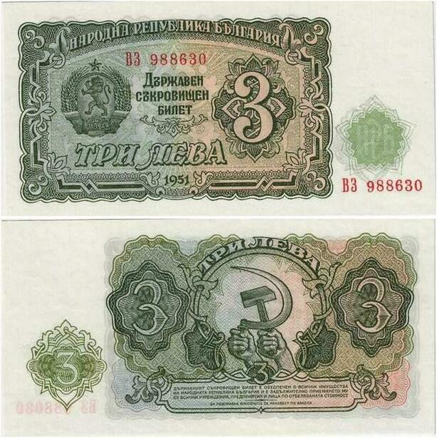 Q2310 Banknote Bulgaria 3 Leva Faucille Marteau 1951 UNC - Offer