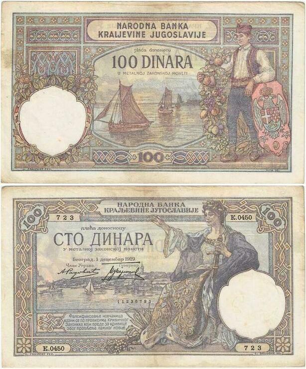 Q2316 Banknote Yugoslavia 100 Dinara Filigrane Karageorge 1929 - Offer