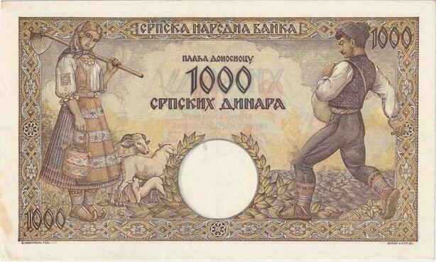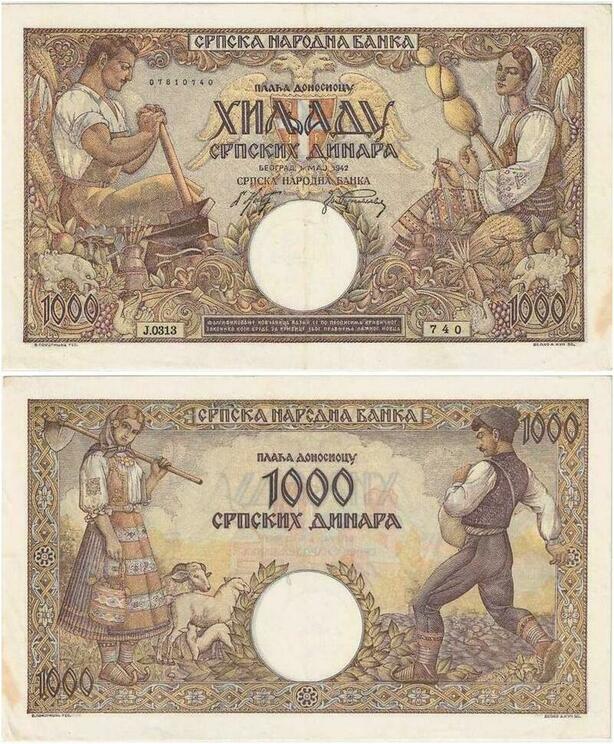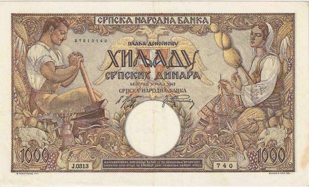 Q2329 Banknote Serbia 1000 Dinara Serbian National Bank 1942 AU - Offer