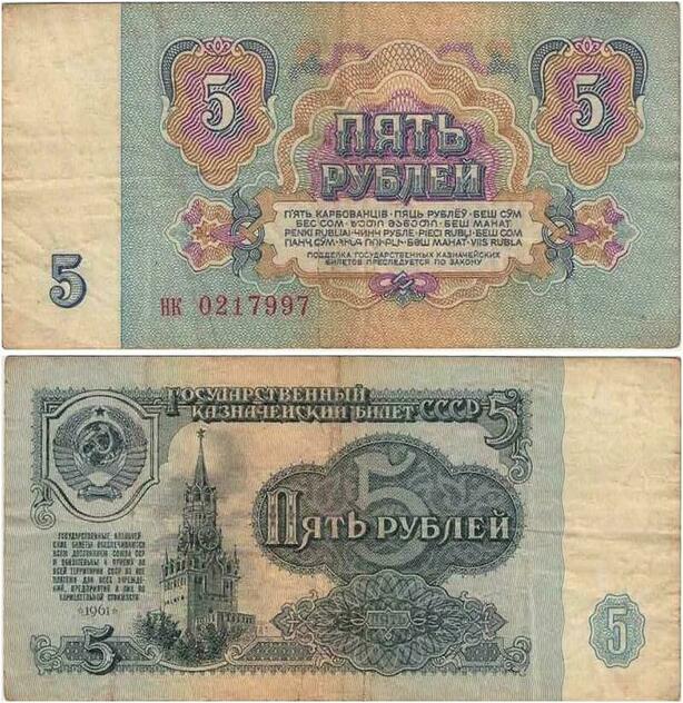 Q2334 Banknote Russia USSR 5 Roubles State Treasury Note 1961 - Offer