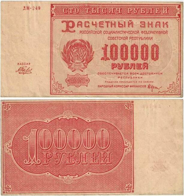 Q2341 Banknote Russia USSR 100000 Roubles 1921 - Offer