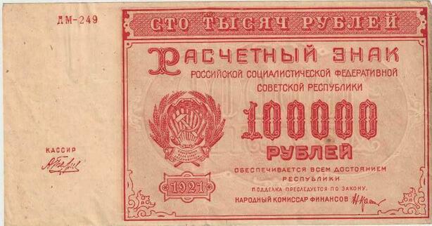 Q2342 Banknote Russia USSR 100000 Roubles 1921 -> Offer