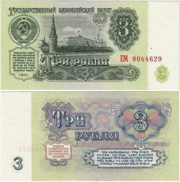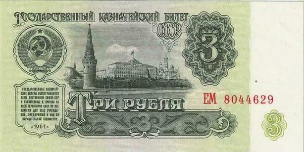 Q2388 Banknote Russia USSR 3 Rouble Moscow Kremlin 1961 UNC - Offer