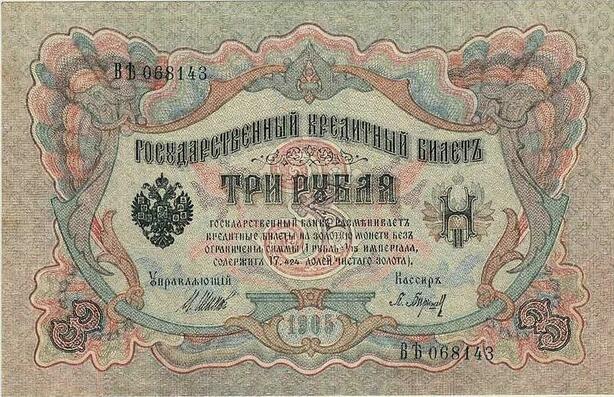 Q2427 Banknote Russia Russian Imperial 3 Roubles 1905 AU - Offer